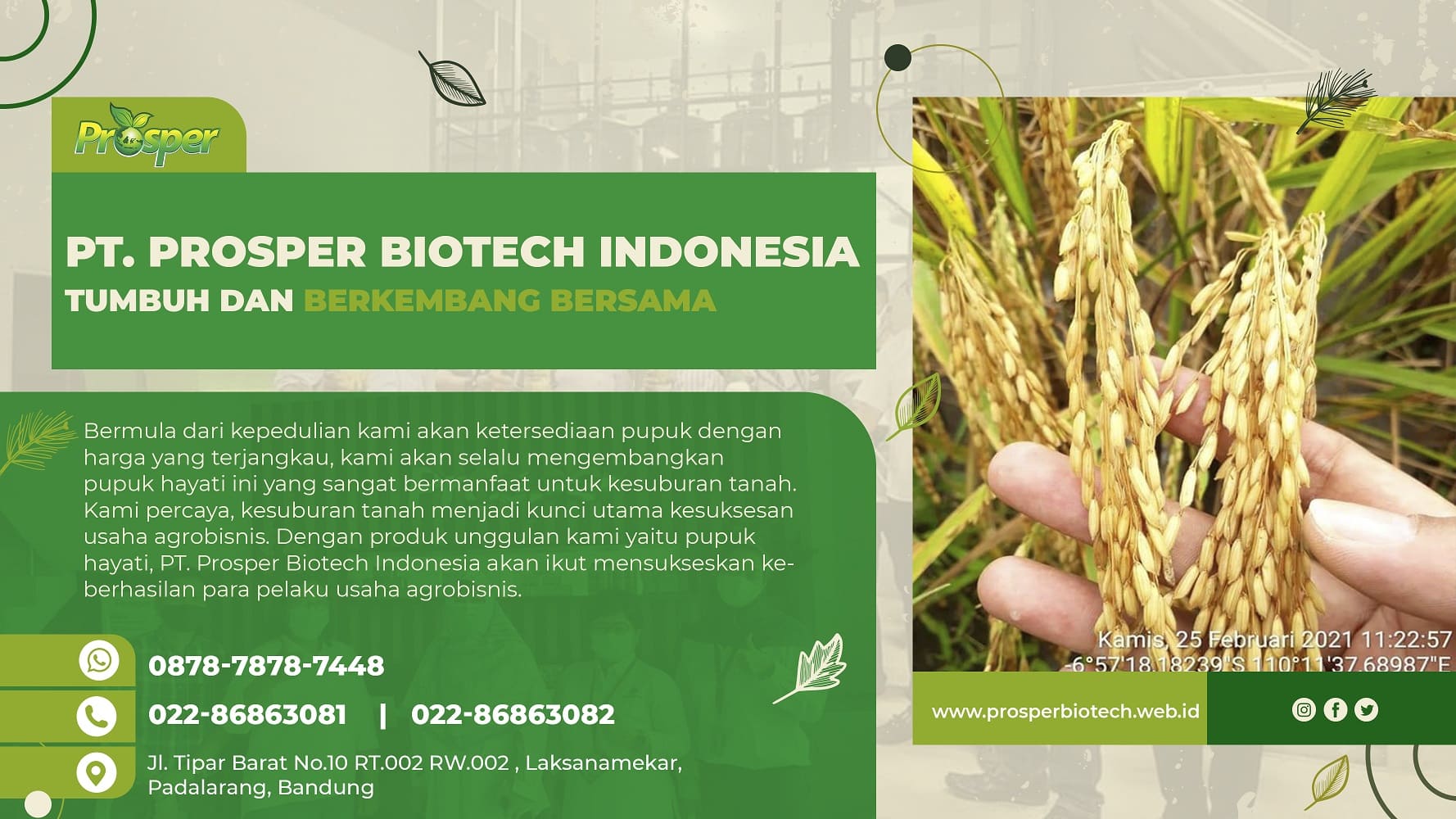 PT. Proseper Biotech Indonesia merupakan salah satu perusahaan dalam negeri yang bergerak dalam bidang agro. Perusahaan yang beralmat di Jl. Tipar Barat No.10 RT.002 / RW.002, Laksanamekar, Padalarang, Bandung ini berfokus pada produksi pupuk hayati berbasis konsorsium mikroorganisme.